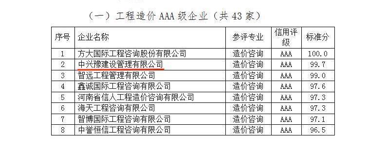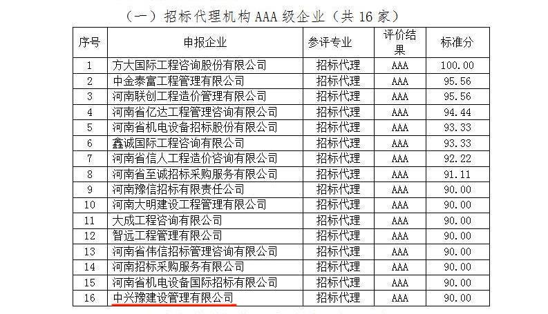 喜報丨中興豫管理榮獲鄭州市工程造價AAA級企業(yè)、鄭州市工程招標代理AAA級企業(yè)、鄭州市工程監(jiān)理AA級企業(yè)-公司榮譽