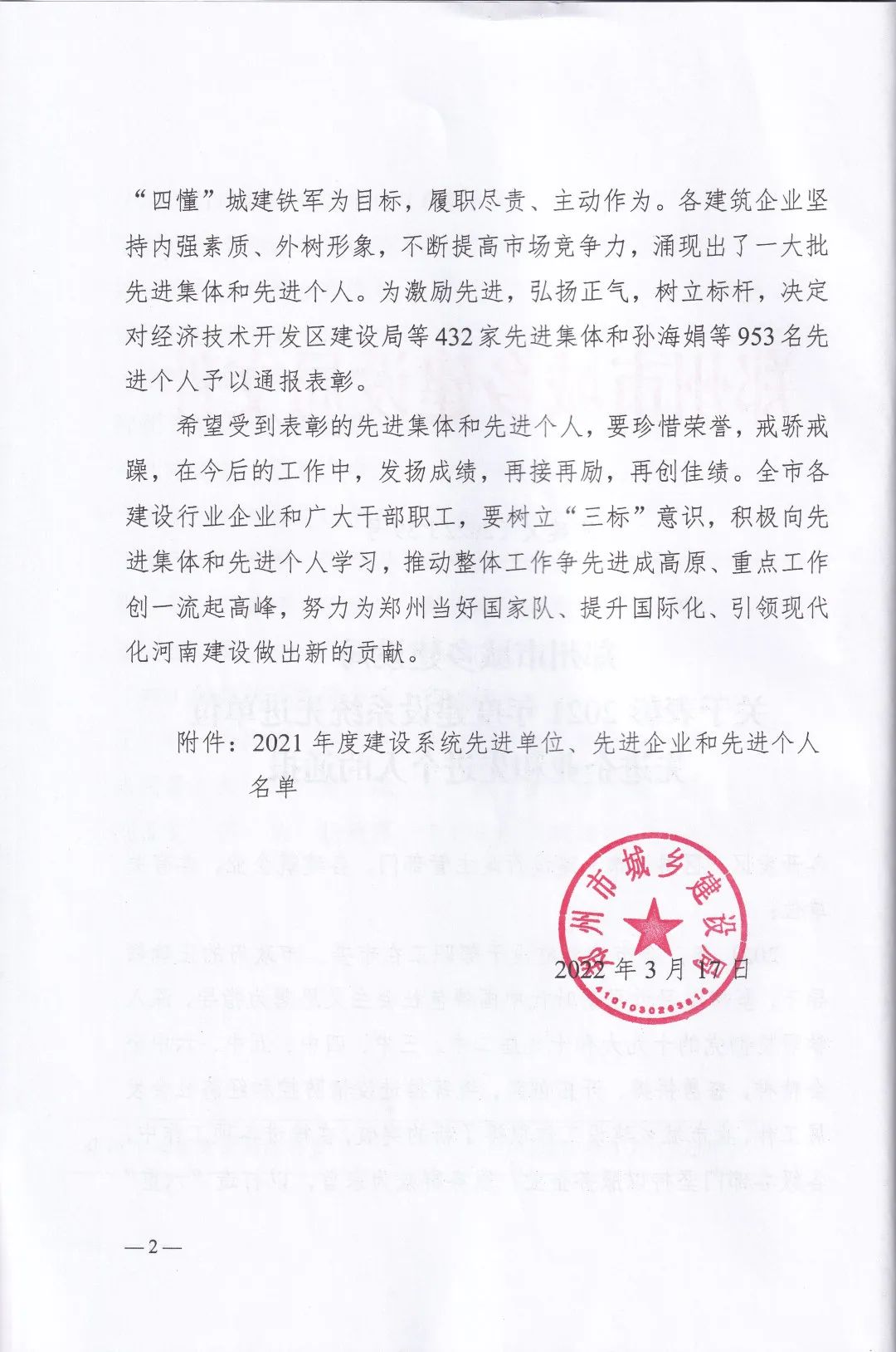 近日,鄭州市城鄉(xiāng)建設(shè)局發(fā)布了《關(guān)于表彰2021年度建設(shè)系統(tǒng)先進(jìn)單位先進(jìn)企業(yè)和先進(jìn)個人的通報》,中興豫建設(shè)管理有限公司被評為“2021年度招標(biāo)代理先進(jìn)單位”、“2021年度造價咨詢行業(yè)先進(jìn)單位”,我公司員工韋曉東被評為“優(yōu)秀總監(jiān)”、劉東生被評為“優(yōu)秀注冊監(jiān)理工程師”、賈世軍被評為“優(yōu)秀造價工程師”。