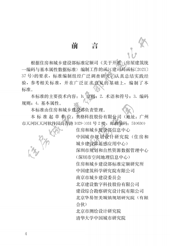 《標(biāo)準(zhǔn)》主要包括總則、術(shù)語和符號、編碼規(guī)則、基本屬性4項技術(shù)內(nèi)容,適用于房屋建筑編碼、基本屬性采集、數(shù)據(jù)處理和信息共享應(yīng)用,不適用于構(gòu)筑物。