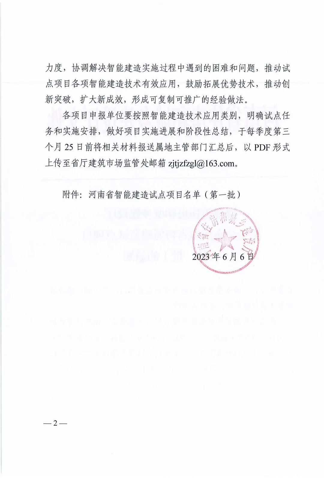 2023年6月7日,河南省住房和城鄉(xiāng)建設(shè)廳公布的河南省智能建造試點(diǎn)項(xiàng)目名單(第一批)中,我公司“省直青年人才公寓博學(xué)苑項(xiàng)目”榮登榜單。