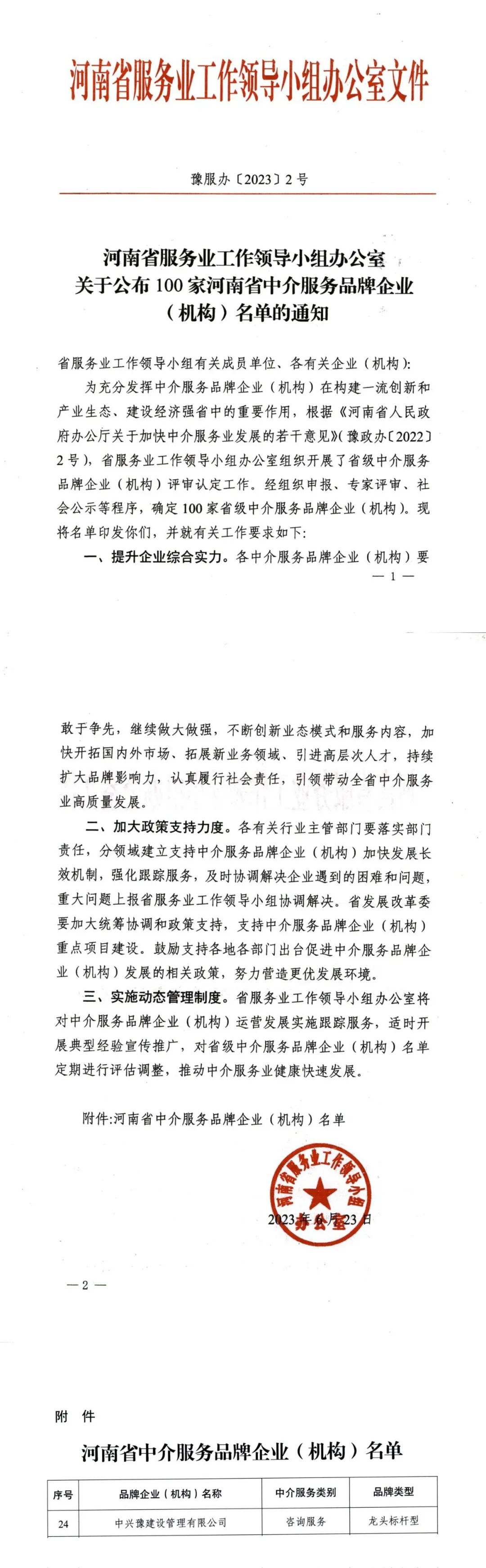 近日,河南省服務業(yè)工作領導小組辦公室公布100家河南省中介服務品牌企業(yè)(機構)名單。經(jīng)組織申報、專家評審、社會公示等程序,中興豫建設管理有限公司入選其中,被譽為河南省咨詢服務類龍頭標桿型企業(yè)。