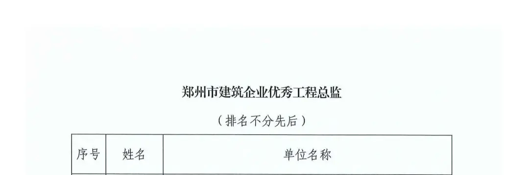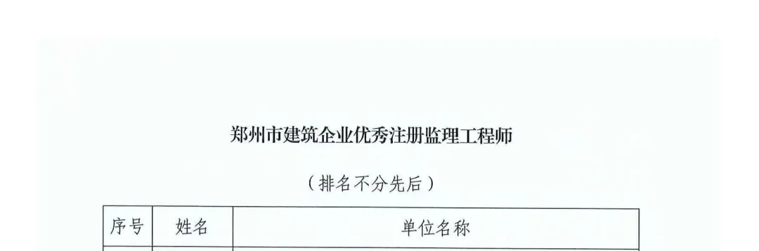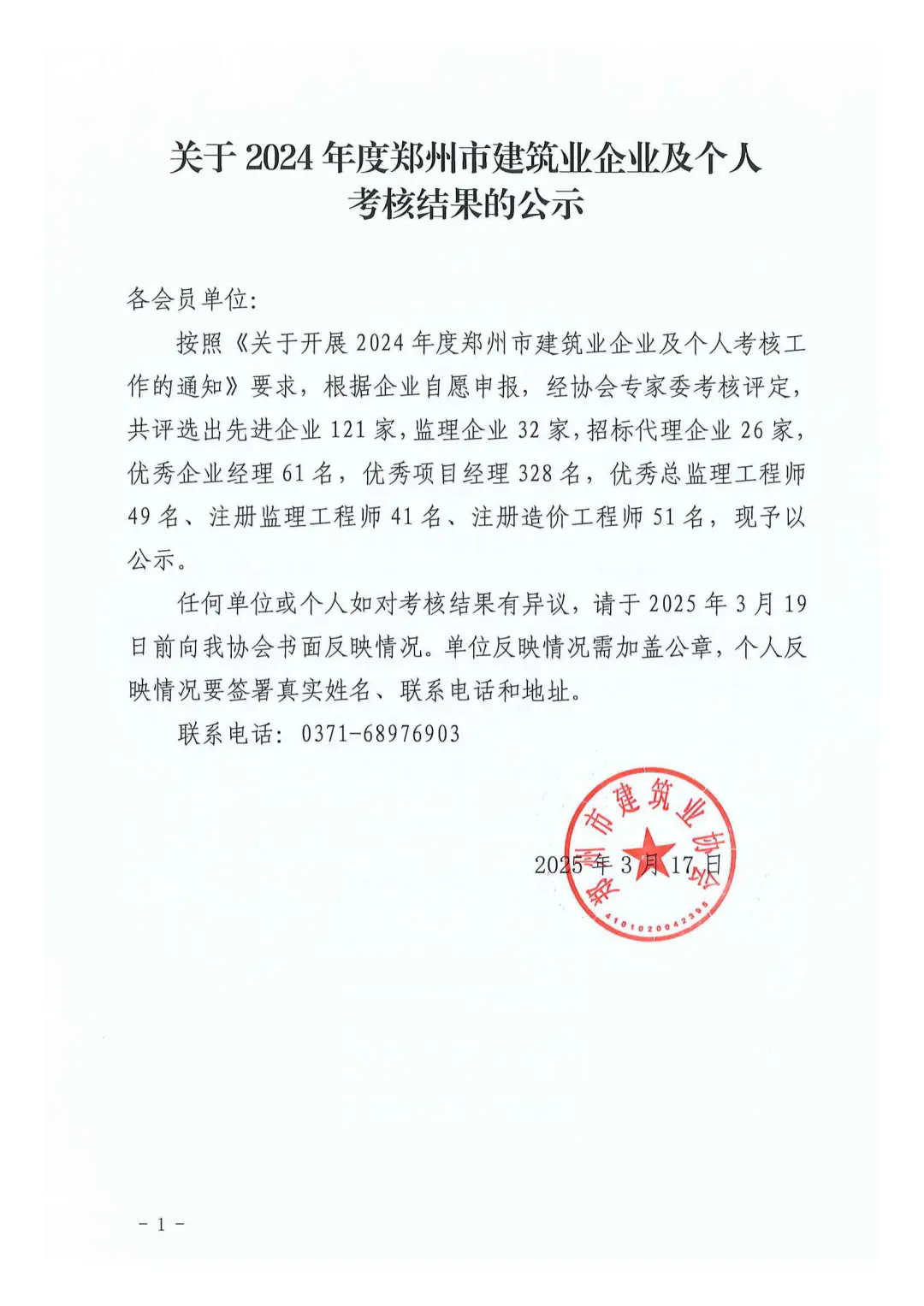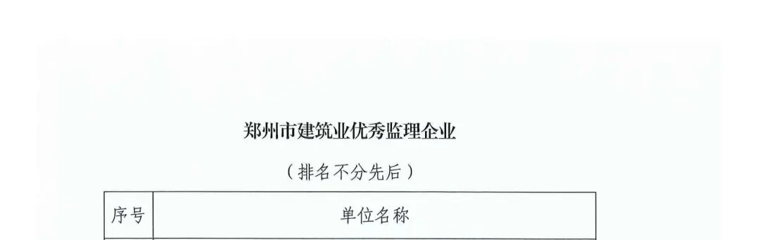 近日,鄭州市建筑業(yè)協(xié)會發(fā)布關(guān)于2024年度鄭州市建筑業(yè)企業(yè)及個人考核結(jié)果的公示。其中,中興豫建設管理有限公司榮幸入選“鄭州市建筑業(yè)優(yōu)秀監(jiān)理企業(yè)”、“鄭州市建筑業(yè)優(yōu)秀招標代理企業(yè)”。
