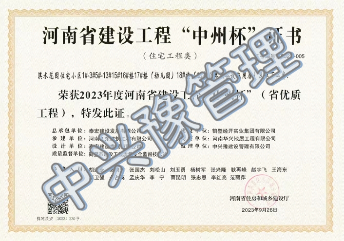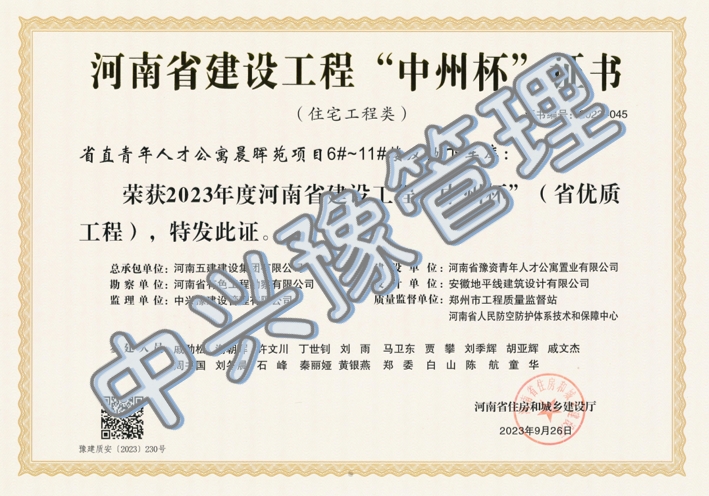 近日,河南省住房和城鄉(xiāng)建設廳公布了《關于2023年度河南省建設工程中州杯(省優(yōu)質工程)的通報》。中興豫建設管理有限公司監(jiān)理的淇水花園住宅小區(qū)1#-3#5#-13#15#16#樓17#樓 (幼兒園) 18#樓(配套公共服務設施用房)及地下車庫項目和省直青年人才公寓晨暉苑項目6#~11#樓及地下車庫項目榜上有名。