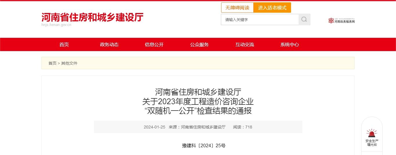 根據(jù)2023年度“雙隨機、一公開”年度計劃安排,我廳自去年10月16日起對全省工程造價咨詢企業(yè)開展了“雙隨機、一公開”抽查,現(xiàn)將檢查結(jié)果通報如下: