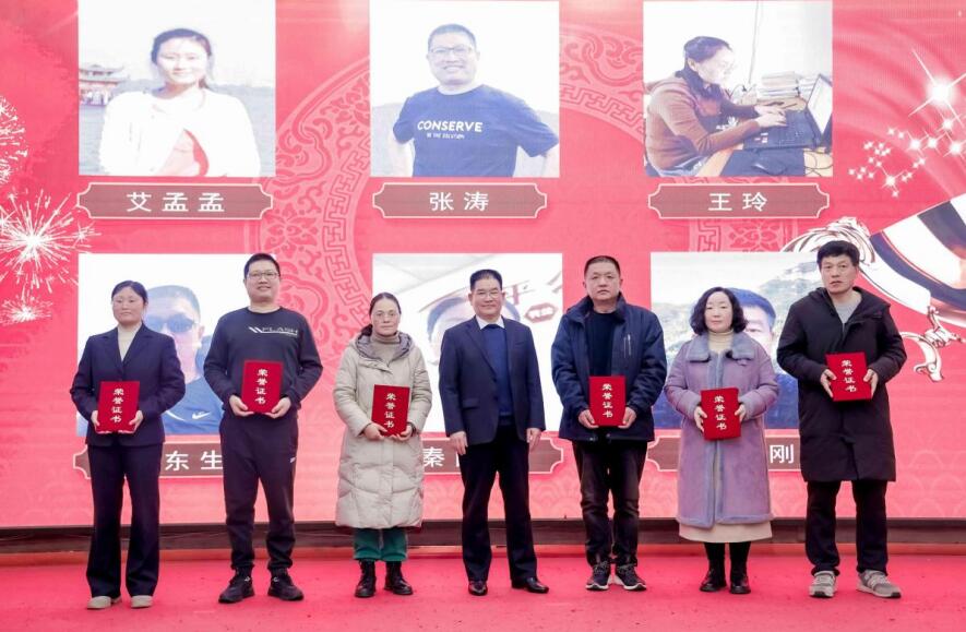 在熱烈的掌聲中,公司董事長劉秒向先進(jìn)集體代表頒獎(jiǎng),公司總裁李瑞林向先進(jìn)工作者代表頒獎(jiǎng)。