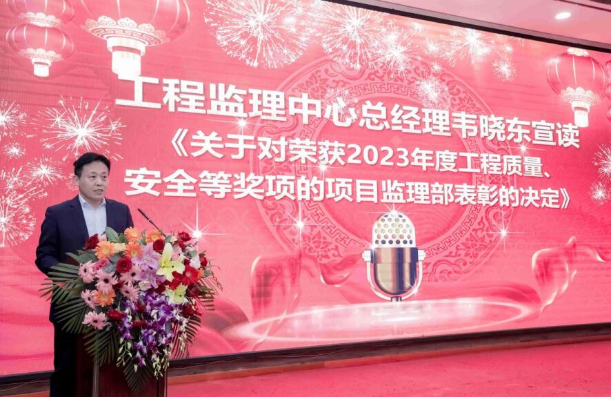 隨后,工程監(jiān)理中心總經(jīng)理韋曉東宣讀《關(guān)于對榮獲2023年度工程質(zhì)量、安全等獎(jiǎng)項(xiàng)的項(xiàng)目監(jiān)理部表彰的決定》。