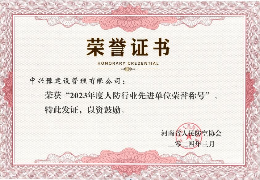 中興豫建設(shè)管理有限公司獲此榮譽(yù),是行業(yè)協(xié)會(huì)對(duì)我公司工作的高度認(rèn)可與肯定,在今后的發(fā)展中,我們將再接再厲,繼續(xù)發(fā)揮示范引領(lǐng)作用,當(dāng)好“排頭兵”,秉持“科學(xué)公正高效、至誠(chéng)服務(wù)社會(huì)”的經(jīng)營(yíng)理念,積極踐行誠(chéng)信自律的優(yōu)良作風(fēng),不斷提升行業(yè)服務(wù)水平,為促進(jìn)我省人防行業(yè)高質(zhì)量發(fā)展貢獻(xiàn)自身力量!