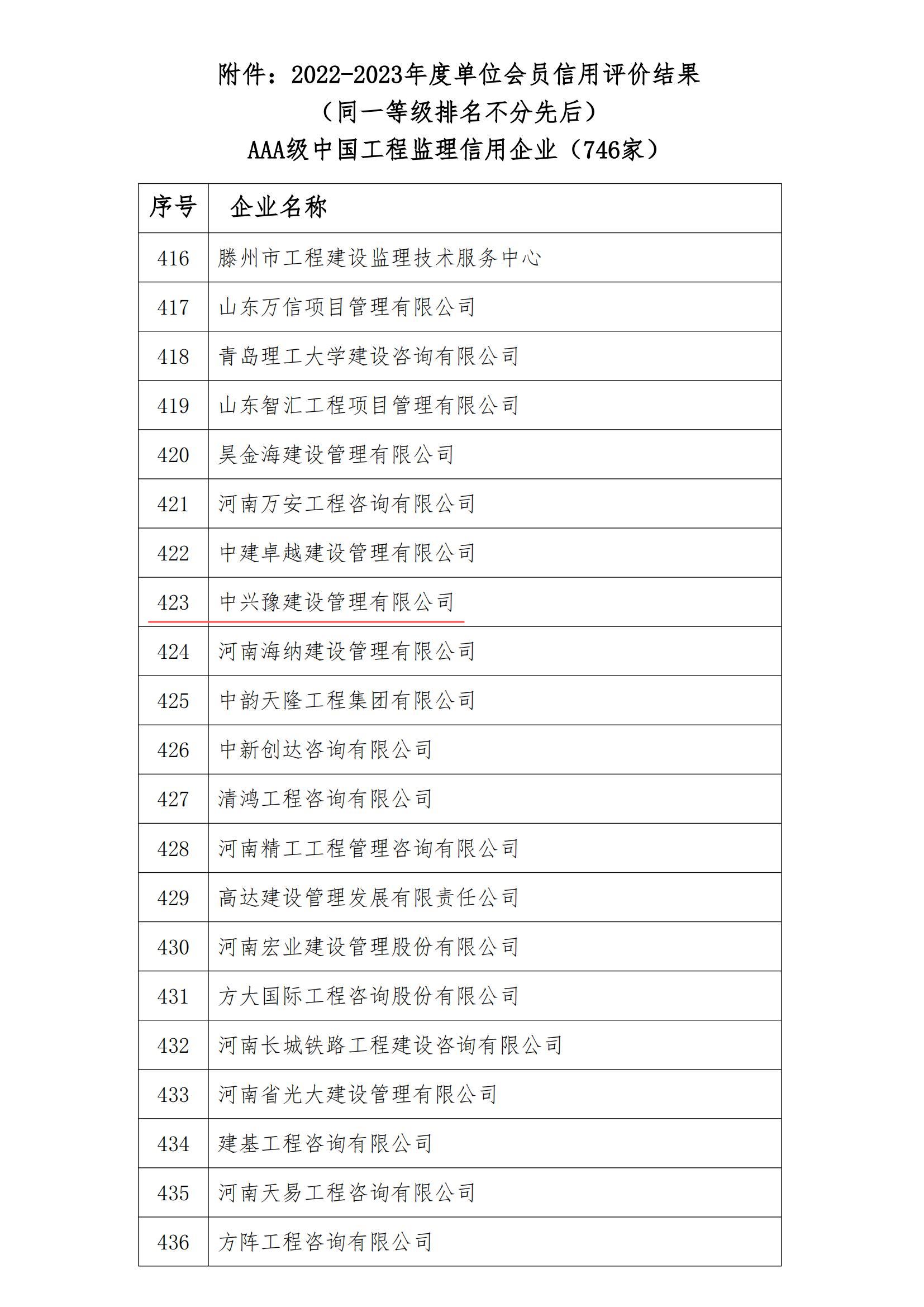 近日,中國(guó)建設(shè)監(jiān)理協(xié)會(huì)發(fā)布了《關(guān)于2022-2023年度中國(guó)建設(shè)監(jiān)理協(xié)會(huì)單位會(huì)員信用評(píng)價(jià)結(jié)果的公示》,經(jīng)自評(píng)、省級(jí)協(xié)會(huì)初評(píng)、專(zhuān)家評(píng)委綜合評(píng)審、公示、反饋、專(zhuān)家復(fù)核等評(píng)價(jià)程序,中興豫建設(shè)管理有限公司榮獲中國(guó)工程監(jiān)理信用評(píng)價(jià)AAA級(jí)企業(yè)!