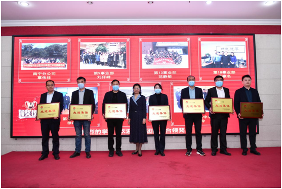 隨后,在熱烈的掌聲中,董事長劉秒向先進集體代表頒獎??偛美钊鹆窒蛳冗M工作者代表頒獎。