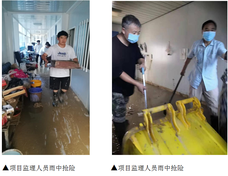 ▲項目監(jiān)理人員進行雨后清淤
