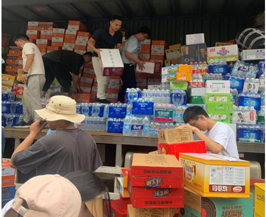 ▲公司員工協(xié)助搬運救援物資